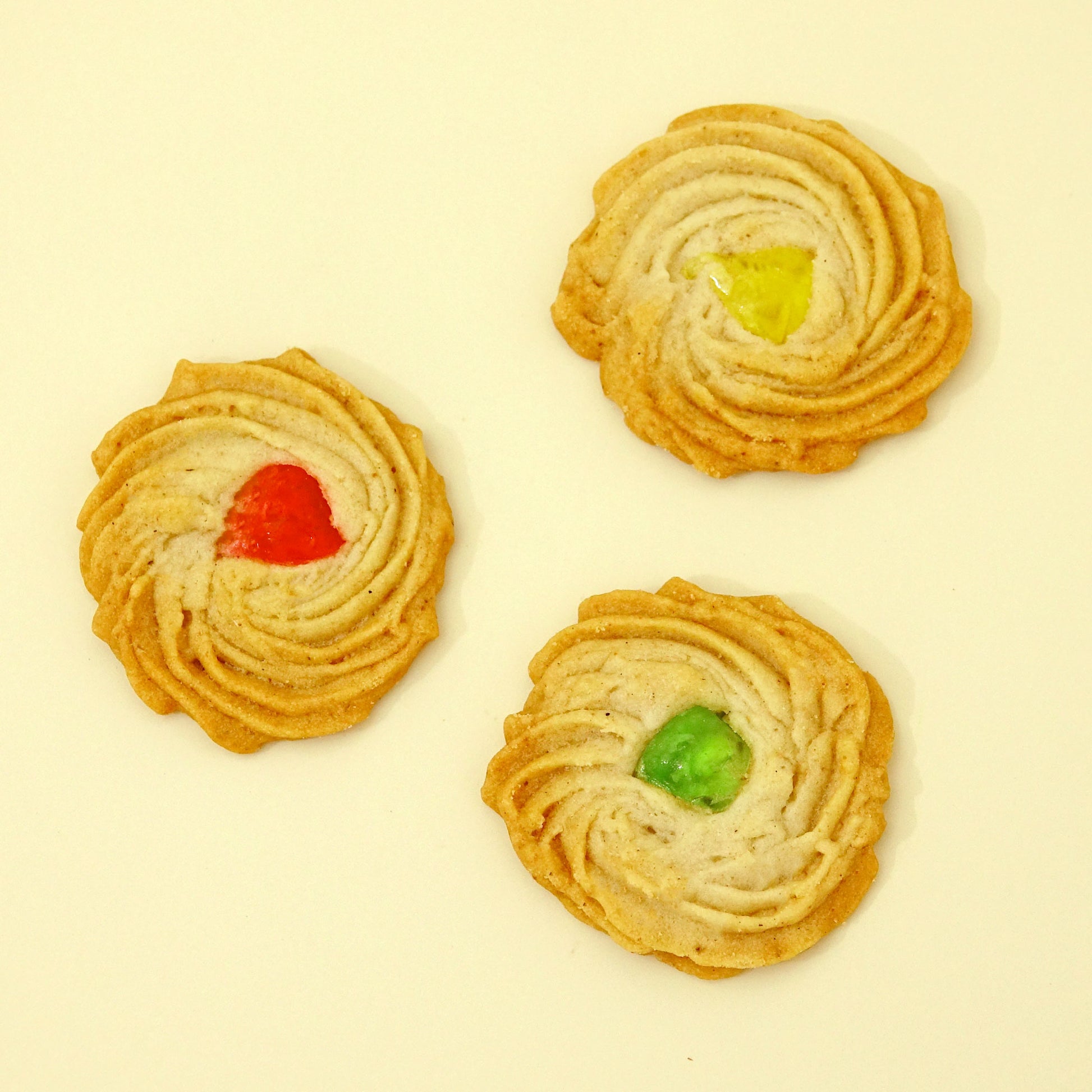 カラフルなドレンチェリーを乗せた軽い食感のクッキー。